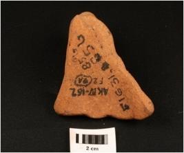 | Description / विवरण | Fragment of a lid, with smooth surface, buff wash treatment given in red colour. |