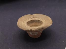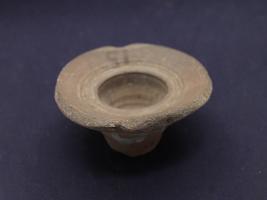 | Description / विवरण | It s a lid made by high quality clay. Colour is brownish and well fired. Bottom portion is flat and a deep pit on it. Surface is rough and deposition of dust. |
