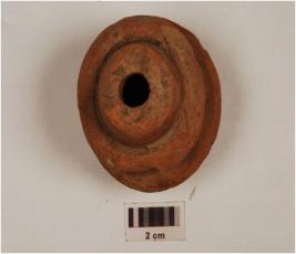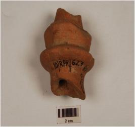 | Description / विवरण | Fragment of a vessel of dull red ware,treated with red slip on the exterior, top is broken,ridge below and hollow inside. |