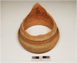 | Description / विवरण | Fragment of red ware vase, collared rim, ridge on neck and medium fabric. |