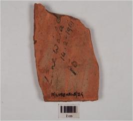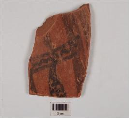 | Description / विवरण | A fragment of red ware painted pottery, having floral pattern within horizontal band on exterior surface, made of medium fabric and well baked. |