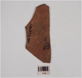 | Description / विवरण | Fragment of a red ware treated with red slip on the exterior and series of incised lines externally. |