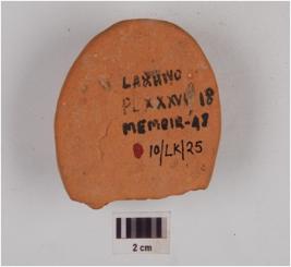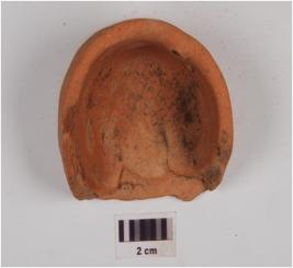 | Description / विवरण | Fragment of a miniature bowl of red ware, has vertical profile, flat base, perforation on rim and of medium fabric. |