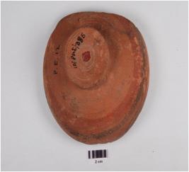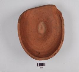 | Description / विवरण | Fragment of a vase of red ware, foot base, globular profile, painted with wavy design with in horizontal band in black pigment on exterior, red slip and medium fabric. |