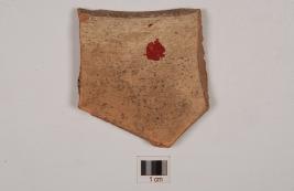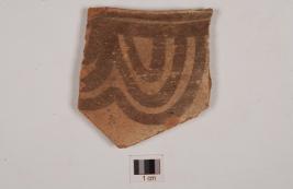 | Description / विवरण | A fragment of a vase of buff ware, everted rim, straight sides, concentric loop design, painted in black pigment on the exterior and of fine fabric. |