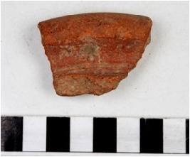| Description / विवरण | A fragment of a vase of red ware with beaded rim, concave neck and tapering sides, medium fabric. |