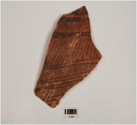 | Description / विवरण | A fragment of red ware treated with red slip on exterior, painted with loop design and horizontal line in black pigment. |