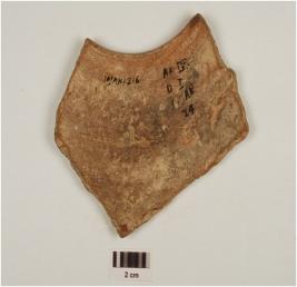 | Description / विवरण | A Fragment of rim, jar of red ware, with closing rim of medium fabric and showing an oxidized core. |