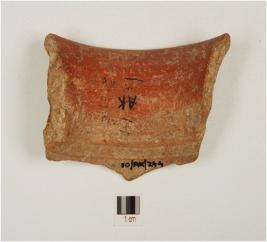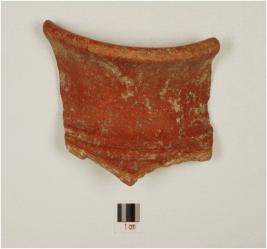 | Description / विवरण | Fragment of rim, vase of red ware with out-curved rim , incised lines on shoulder and of medium fabric. |