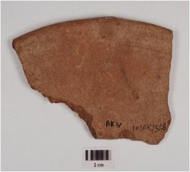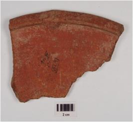 | Description / विवरण | fragment of rim a dish of red ware, treated with red slip on the both sides, has incurved rim and convex profile. |