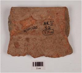 | Description / विवरण | fragment of rim basin of red ware with an externally thickened rim, of medium fabric, showing an incomplete oxidization and treated with red slip. |