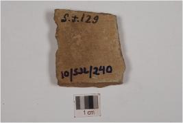 | Description / विवरण | Potsherd of grey ware having incised notch design on the surface and showing an oxidized core. |