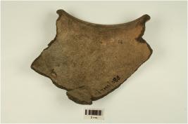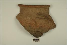 | Description / विवरण | Fragment of a vase of red ware, treated with red slip on the exterior, has a flaring beaded rim, concave neck globular profile and ill baked. |