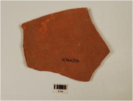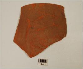| Description / विवरण | Potsherd of vessel of red ware, having rustication on the exterior and of medium fabric. |