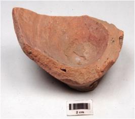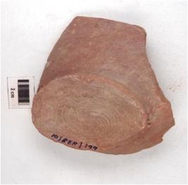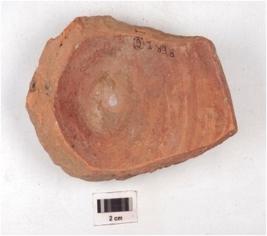 | Description / विवरण | Fragment of red ware vase, globular profile, disc base , medium fabric , clay mixed with mica well baked and dark red slip. |