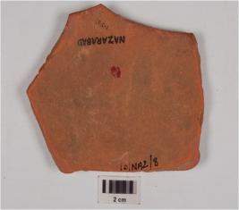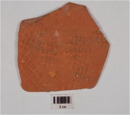 | Description / विवरण | Potsherd of red ware, criss-cross design on the exterior, treated with red slip and medium fabric. |