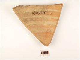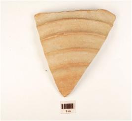| Description / विवरण | Fragment of a red ware vessel, multiple ridges on the exterior. |