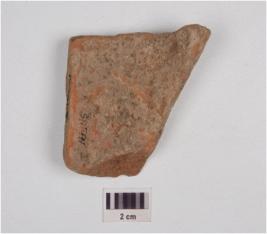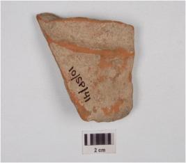 | Description / विवरण | Potsherd of red ware with a prominent ridge on the exterior. |