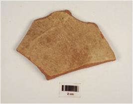 | Description / विवरण | Potsherd of red ware , with incised design on surface and treated with buff slip. |