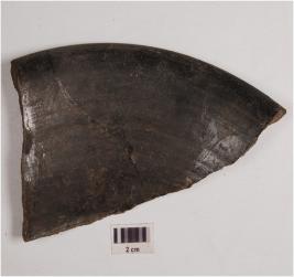 | Description / विवरण | Fragment of vase of black-and-red ware, has out turned rim, and of fine fabric. |