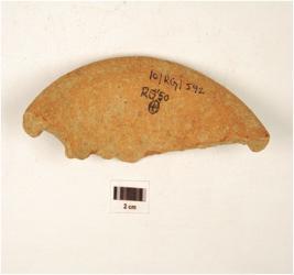 | Description / विवरण | Fragment of a vase of red ware with out-curved rim and treated with red slip. |