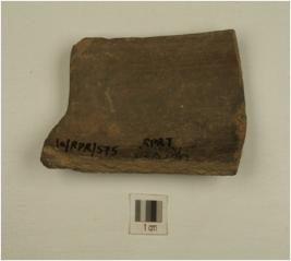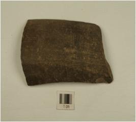 | Description / विवरण | A fragment of dish of grey ware, sharpened incurved rim, sagger base, treated with black slip on the exterior well baked and medium fabric. |