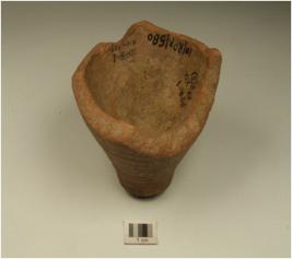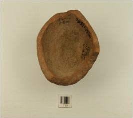 | Description / विवरण | A fragment of miniature vase of red ware, broken rim, tappering profile, foot base, treated with red slip, well baked and medium fabric. |