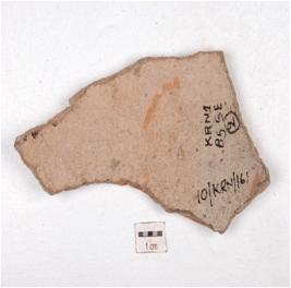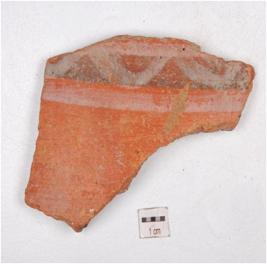 | Description / विवरण | A potsherd of red ware , treated with red slip on the exterior, having horizontal bands and wavy design in black pigment on it, well baked and medium fabric. |