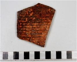 | Description / विवरण | A potsherd of red ware of medium fabric and ill fired. |