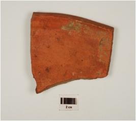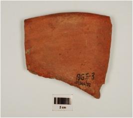 | Description / विवरण | Fragment of rim a basin of red ware with slighting convex profile and of medium fabric. |