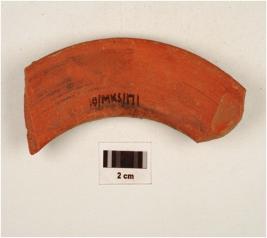 | Description / विवरण | Fragmentry vase of red ware with an out-turned rim, designed with pattern of incisions around the edges painted in black internally of medium fabric showing an oxidized core and treated with red slip. |