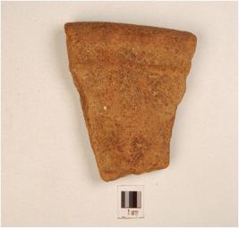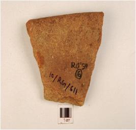 | Description / विवरण | A fragment of a vase of red ware , has beaded rim, and medium fabric. |