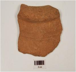 | Description / विवरण | Fragment of rim a vase of red ware treated with red slip, has oval collared rim and convex profile. |