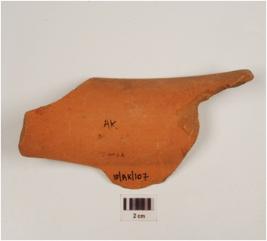| Description / विवरण | Fragment of rim a vase of red ware treated with red slip, has flaring rim, concave neck and carination at the waist. |