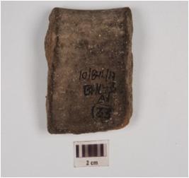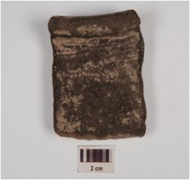 | Description / विवरण | A fragment of basin of black ware, out turned thickened rim, straight sides, black slip on surface, made of coarse fabric and well baked. |