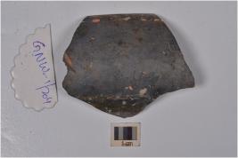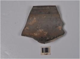 | Description / विवरण | A fragment of a dish of grey ware featureless rim and convex side and shallow base. |
