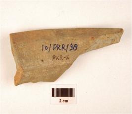 | Description / विवरण | A fragment of a vase of red ware, with flaring rim, concave neck of medium fabric, treated with buff slip and showing an in oxidized core. |