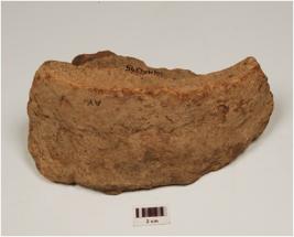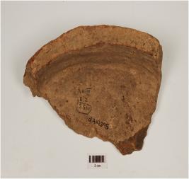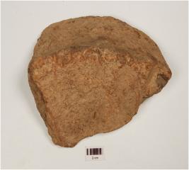 | Description / विवरण | A fragment of potsherd, a handmade trough of dull red ware, has rim missing vertical profile, and flat base. |