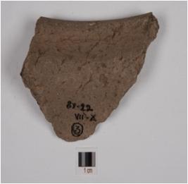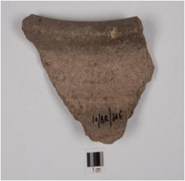 | Description / विवरण | Fragment of vase of grey ware, out curved rim, concave neck, spreading shoulder, treated with grey slip and of medium fabric. |