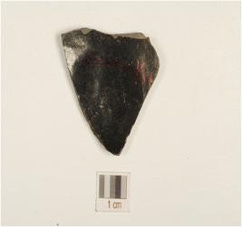 | Description / विवरण | A fragment of NBPW ware, of fine fabric, showing an oxidized core and treated with black slip on the surface. |