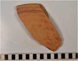 | Description / विवरण | A fragment of a basin of red ware with out turned rim, tapering sides, of fine fabric. |