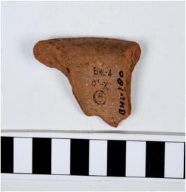 | Description / विवरण | A fragment of a vase of red ware with out turned rim concave neck oblique sides. |