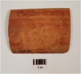 | Description / विवरण | Fragment of rim bowl of black-and-red ware, treated with black slip inside and red slip on the exterior, has incurved flat top rim and convex profile. |