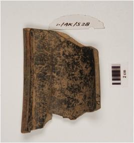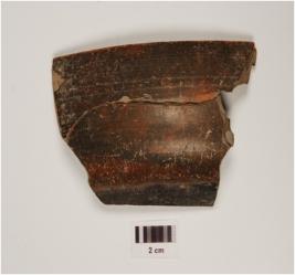 | Description / विवरण | Fragment of rim dish of black-and-red ware, has incurved flat top rim and convex profile. |