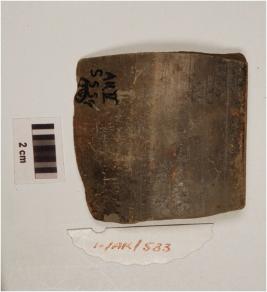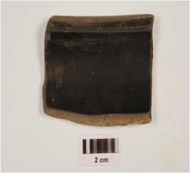 | Description / विवरण | Fragment of Rim a dish of grey glazed ware, treated with black slip inside, has internally beveled rim and convex profile. |