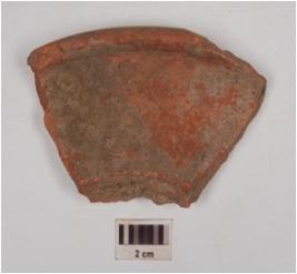 | Description / विवरण | A fragment of red ware vase, having out turned thickened rim, red slip is given on surface, made of medium fabric well baked. |