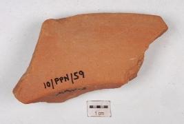 | Description / विवरण | Fragmentry vase of redware with an out curved rim, of medium fabric showing an oxidized core and treated with buff slip externally. |