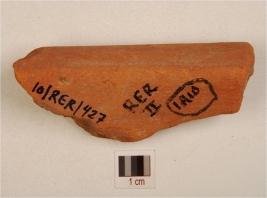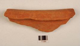 | Description / विवरण | A fragment of handi of red ware horizontally splayed out curved rim, treated with red slip, well baked and medium fabric. |