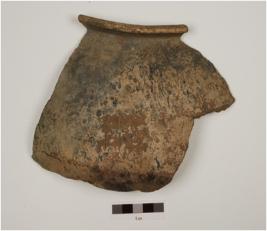 | Description / विवरण | Fragment of Rim a handi of grey ware, has obliquely splayed out rim, spreading shoulder, and carination below. |