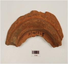 | Description / विवरण | A base fragment of potsherd dull red ware vessel, finger impression on exterior chain design on surface, flat base and medium fabric. |